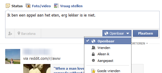 In elk geval bepaal je zelf hoe berichten en foto’s op je Facebookprofiel komen te staan. Let dus op de manier van plaatsen, die je met de knop naast de ‘plaats-knop’ instelt. Heb je vervolgens twijfels over de verspreiding van je gegevens, vraag het dan vooral aan een vriend…of aan een vriend van een vriend. Misschien klikt het zelfs?